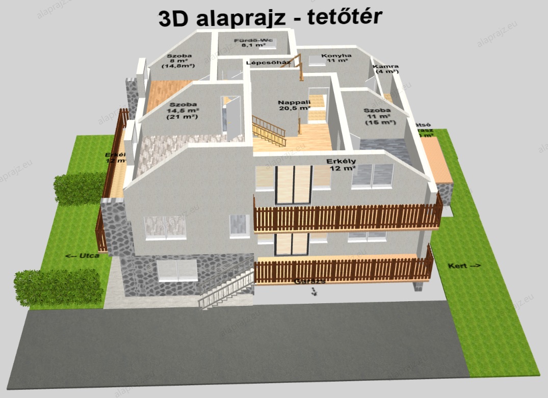 Képzeld el, hogy van egy nagyobb nappali, és annak az egyik sarkában egy néhány fokos lépcsőn lehet feljebb jutni a két hálószobához, és a fürdőbe, és itt található a padlásfeljáró is. Ennek a nappalinak az egyik oldalán lehet a konyhába jutni, ami "L" alakú, és 11 négyzetméter! A konyhában van kialakítva az étkező sarok is. A nappaliból nyílik egy hálószoba, ami most jelenleg gyermekszobaként funkcionál. A nappaliból lehet kimenni az erkélyre is, és itt található a lépcsősor, amelyiken az alsó szintre lehet lejutni.